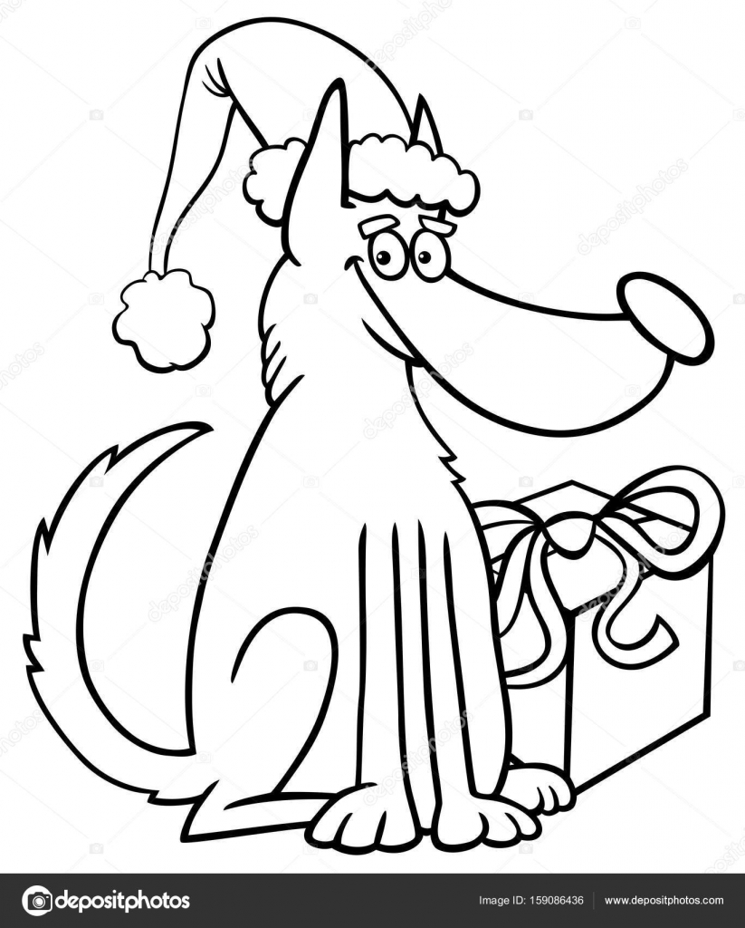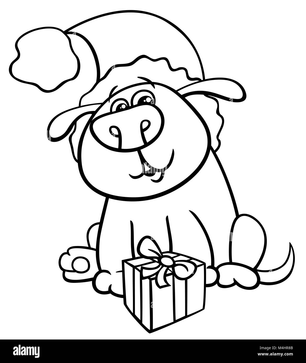 Dog With Christmas Gift Coloring Book Stock Photo 174953755 Alamy