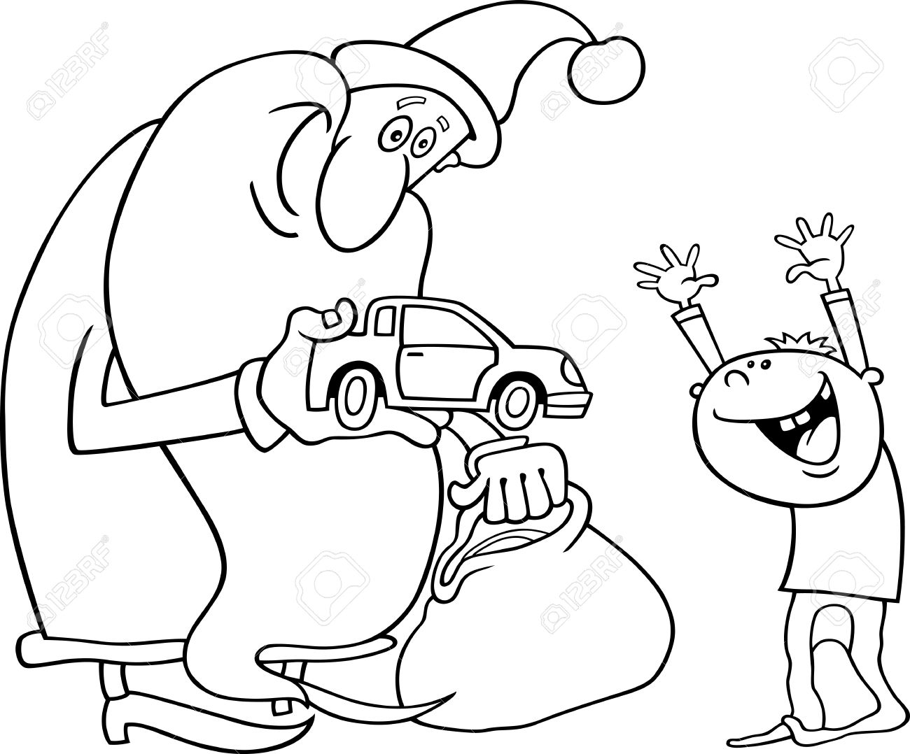 Black And White Cartoon Illustration Of Santa Claus With Big