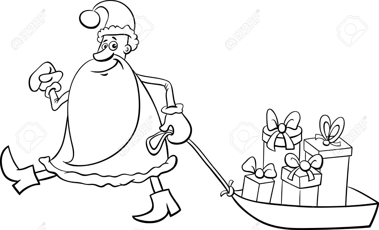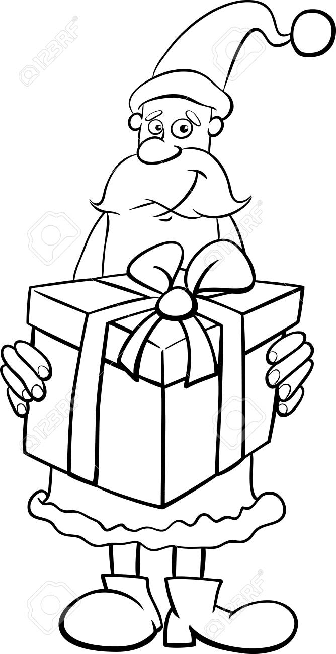 Coloring Book Santa Claus With Christmas Gift Stock Vector