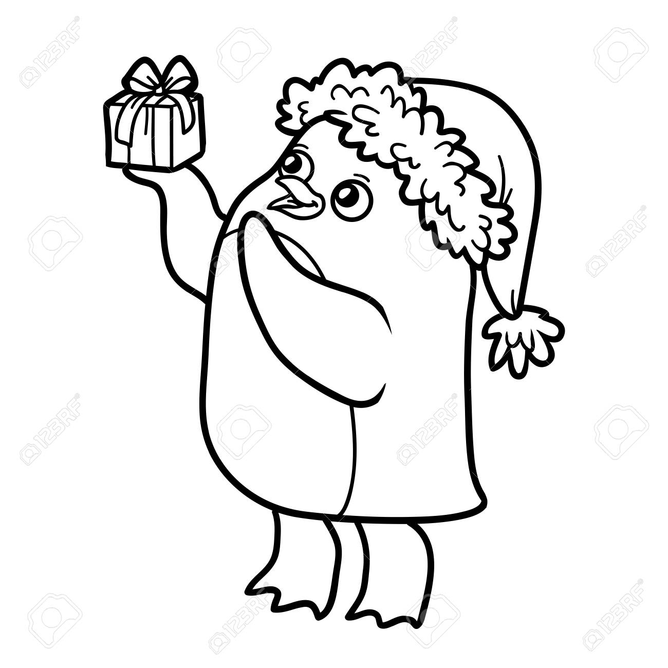 Coloring Book Penguin With Christmas Gift Vector Art Thinkstock