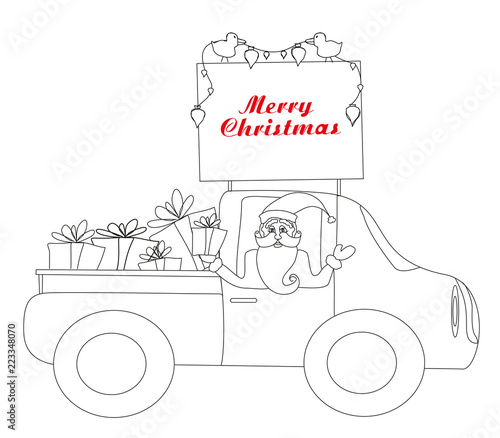 Santa Claus Driving Car With Christmas Gifts Coloring Book Stock