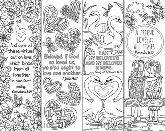 Set Of 8 Bible Verse Coloring Bookmarks For Kids Scripture Etsy