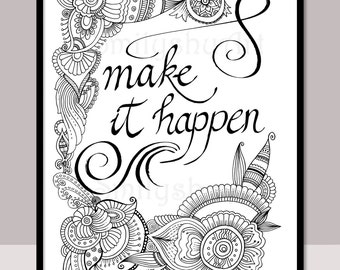 Make It Happen Printable Motivational Quotes Diy Zentangle Etsy